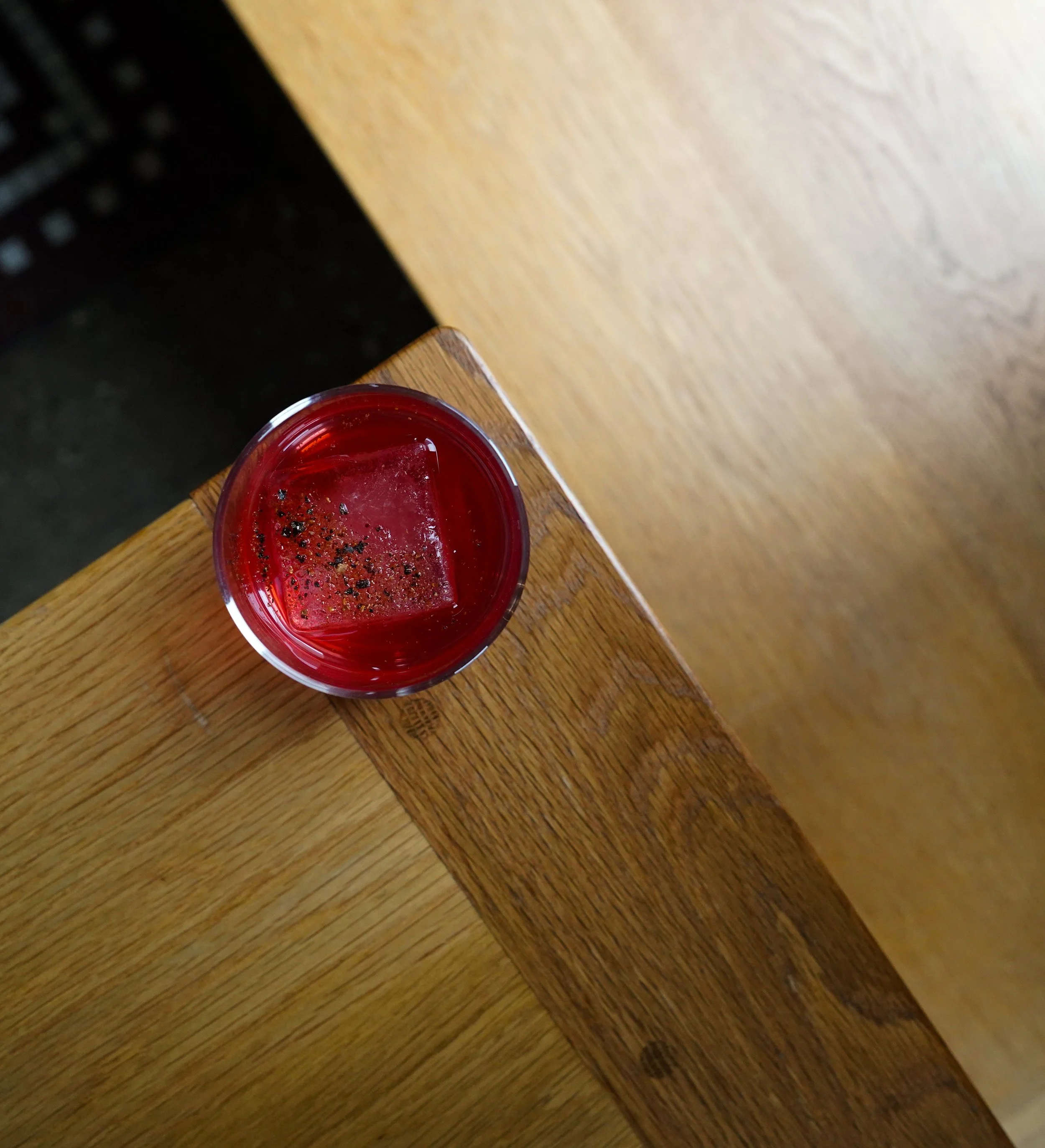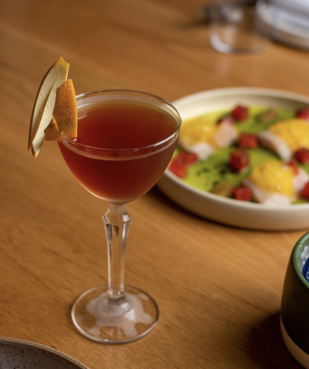 Campari, orange juice, mezcal, and Italicus were then incorporated, resulting in a layered balance of sweetness, acidity, fruit driven aromatics, bitterness, and savory depth from the salt.